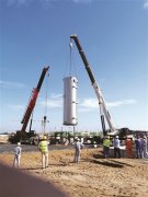 圖為吊裝現(xiàn)場。         11月2日,中國化學工程第六建設有限公司承建的海南華盛26萬噸/年非光氣法聚碳酸酯(PC)項目...