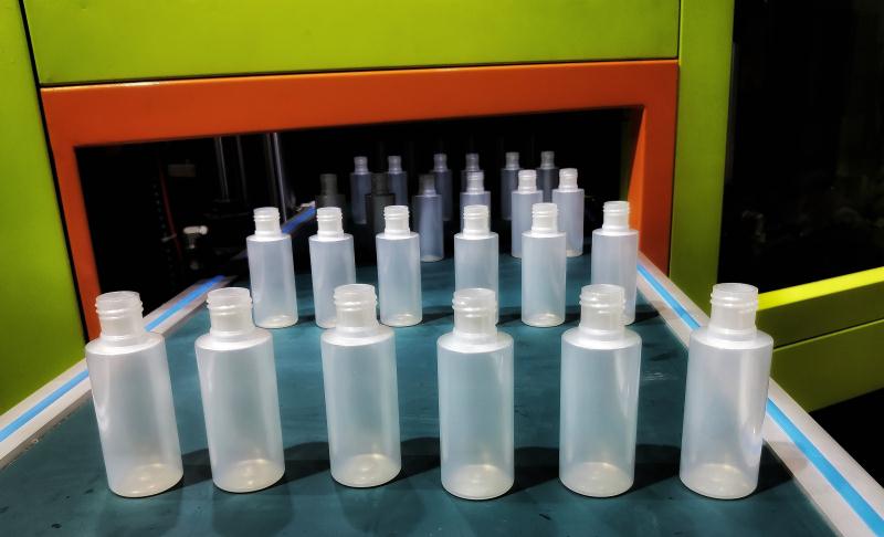 ????????本屆展會,精業(yè)機器展出了全自動一步法“注-拉-吹”機WISB-88AS,配合一出六腔的PET模具,在現場生產化妝品包裝中最常見的100ml精華液瓶,吸引了諸多目光。
