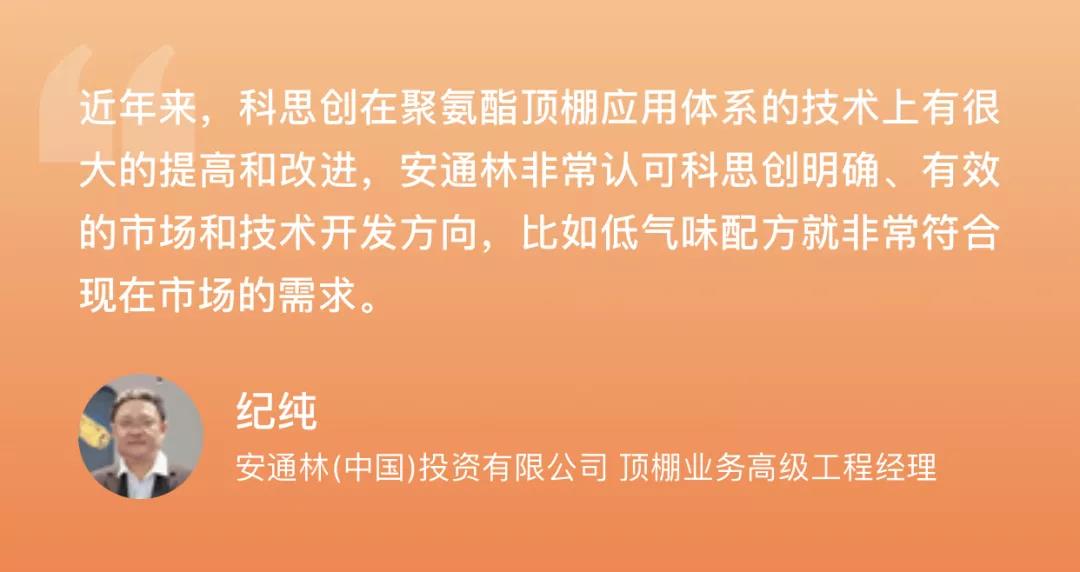 ????????中國的汽車市場很大,消費者對內(nèi)飾的健康安全性,以及美觀的要求更勝于歐美市場,市場的進(jìn)化速度也更快。未來,科思創(chuàng)將繼續(xù)利用全球研發(fā)和生產(chǎn)網(wǎng)絡(luò),同各大領(lǐng)先的汽車制造商和零部件供應(yīng)商在更多的業(yè)務(wù)領(lǐng)域開展深入合作,研發(fā)滿足中國市場需求的定制化的解決方案,共同推動汽車產(chǎn)業(yè)變革,實現(xiàn)共贏!