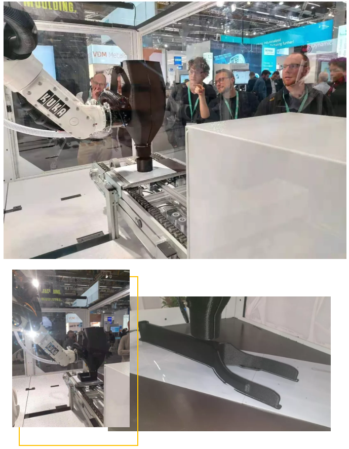????????據(jù)悉,伊之密SpaceA機器人柔性增材制造系統(tǒng)制品可適用于汽車、家電、建筑等領域,提供經(jīng)濟高效的生產(chǎn)方法并實現(xiàn)非常規(guī)組件的高質(zhì)量自動化生產(chǎn)。而通過將原料擠出的形式,SpaceA可以直接使用含纖維填充的熱塑性顆粒料進行生產(chǎn)。