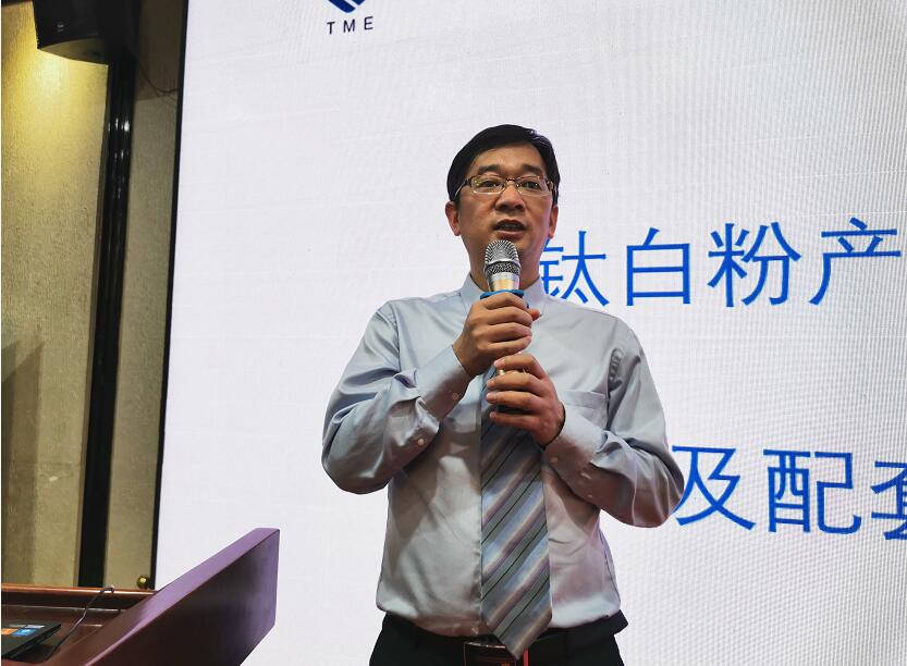 圖為壹化港(上海)網(wǎng)絡科技有限公司總經理蔡緒波在會上作《鈦白粉產業(yè)融資需求及配套解決方案》的主旨報告。