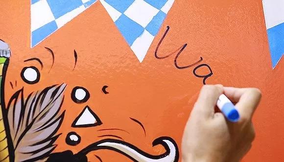 ????????涂鴉墻不僅對(duì)顏料有效,還不懼怕各種粘貼物,因?yàn)槟z水很難附著在這種墻面上。