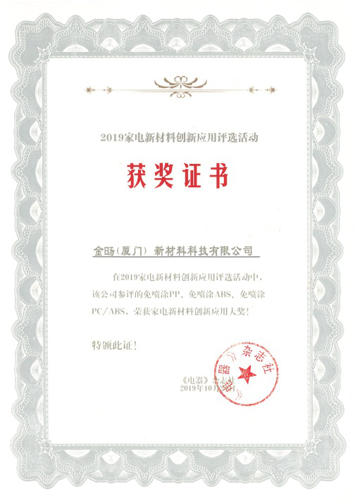 金旸新材料斬獲2019家電新材料創(chuàng)新應(yīng)用大獎