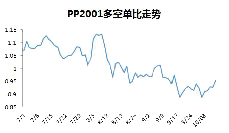????????放長時間看,自從2019年3月底到4月底,PP2001持倉多空比一直在50%臨界線之下,4月底到8月中旬,多空比在50%臨界線之上震蕩,8月中旬到目前在50%臨界線之下。跟基本面走勢并不吻合。當(dāng)多空比與期現(xiàn)價格走勢產(chǎn)生背離時候,要提高警惕,分析原因并判斷真實方向。PP2001合約在9月份換為主力合約,太長時間的參考意義不大。
