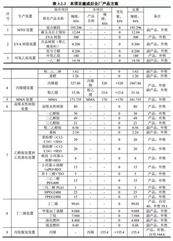 ????????除 360 萬 t/a 醇基多聯(lián)產(chǎn)項目部分裝置(甲醇制烯烴裝置、醋酸乙烯裝置、丙烯酸及酯裝置、丁辛醇裝置、乙丙橡膠裝置、H2/合成氣裝置)未建設外,其余項目均已建成并投入生產(chǎn),目前已建裝置均已通過竣工環(huán)保驗收。