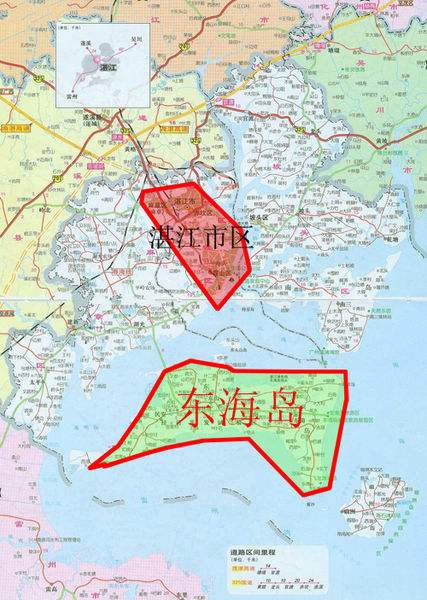 東海島位于在中國雷州半島東部,歷史上屬雷州府遂溪縣轄島。1958年東北大堤修建后方便了島民出入,今屬湛江市經(jīng)濟(jì)開發(fā)區(qū),島內(nèi)主要通有東山、東簡、民安3個街道辦。地勢東高西低,東為玄武巖臺地,西為海積平原。東端距海灘2公里,有海拔111米高的龍水嶺火山錐,面積500×500米,為火山碎屑巖及少量玄武巖構(gòu)成,是天然航海陸標(biāo)。蔚鶨港和北山港為島內(nèi)最大漁港。蔚鶨附近6.5公里岸線,水深26~40米,其中40米深水航道650米。島內(nèi)有尚待開發(fā)的土地40余萬畝,地勢平坦,標(biāo)高4~14米,為地質(zhì)堅硬的火成巖基地。地下水日開采量可達(dá)50萬立方米。盛產(chǎn)魚、鹽,有庵里、紅旗鹽場,海水養(yǎng)殖 以鮑魚和對蝦著稱。海灘綿長且潔白。