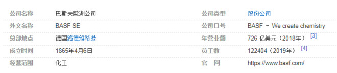 公開資料顯示,巴斯夫成立于1865年,是世界領(lǐng)先的化工公司,總部位于德國萊茵河畔的路德維希港,它是世界上工廠面積最大的化學(xué)產(chǎn)品基地。巴斯夫向客戶提供一系列的高性能產(chǎn)品,涵蓋化學(xué)品、塑料、特性產(chǎn)品、作物保護(hù)產(chǎn)品以及原油和天然氣。一體化(Verbund)基地是公司的優(yōu)勢所在,生產(chǎn)裝置與技術(shù)平臺智能互聯(lián),從而能夠高效地使用資源和發(fā)揮專長。在全球各地的研發(fā)部門擁有約10,000名員工,是保障巴斯夫創(chuàng)新能力和競爭力的堅實(shí)后盾。