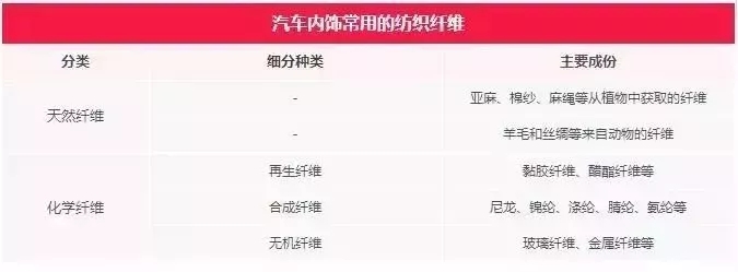 ????????紡織纖維在汽車內(nèi)飾中主要用于汽車座椅、車廂內(nèi)壁、頂棚表皮、安全帶、隔音墊、地墊等,除了具備一定的產(chǎn)品功能性之外,相對(duì)于其他材料,紡織纖維在汽車隔音、隔熱、降噪方面有一定的優(yōu)勢(shì)。