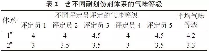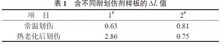 ????????其中,添加酰胺類耐劃傷劑的材料為1#,添加有機(jī)硅類耐劃傷劑的材料為2#。