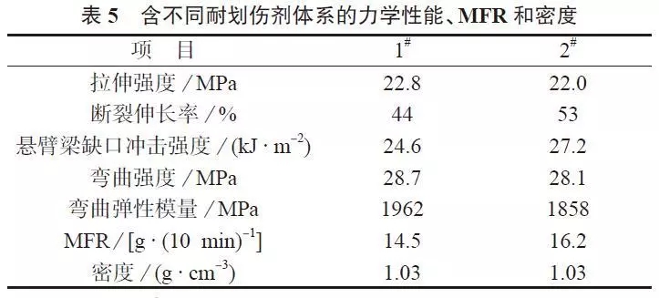 ????????2#的斷裂伸長率、沖擊強(qiáng)度及MFR均高于1#,彎曲彈性模量略低,其余相差不大。