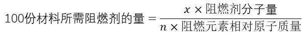 ????????根據(jù)表格中阻燃元素的含量與離火自熄的關(guān)系,我們可以推算阻燃劑的用量。式中,x為上表中阻燃元素的含量值;n為阻燃元素的個(gè)數(shù)。