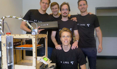 圖為9T實(shí)驗(yàn)室團(tuán)隊(duì)的成員,從左至右依次為Giovanni Cavolina,,F(xiàn)ilippo Kusch,Sel?uk Ercan和Martin Eichenhofer, 最前方靠近3的打印機(jī)的為Chester Houwink。圖片來(lái)源:9T實(shí)驗(yàn)室