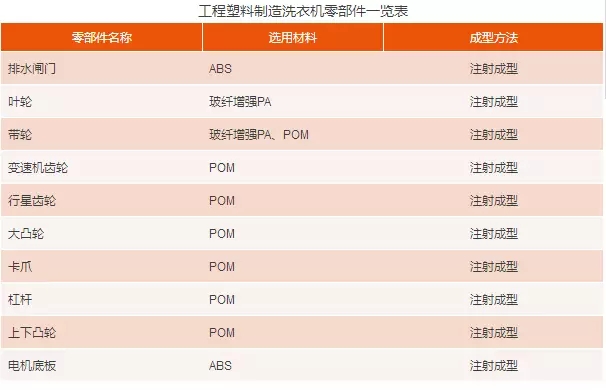 ????????洗衣機(jī)也是使用塑料件較多的家用電器之一,主要包括內(nèi)筒、底座、波輪等,一臺(tái)雙缸洗衣機(jī)使用塑料約7-12千克,全自動(dòng)洗衣機(jī)可達(dá)20千克,占洗衣機(jī)總重量的30%左右。其中,使用的最多的是通用塑料PP,工程塑料用的較多的是POM、PA和ABS。