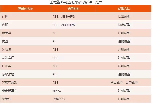 ????????目前在家電產(chǎn)品中,冰箱對(duì)塑料原材料的需求最大,平均每臺(tái)冰箱塑料占比高達(dá)30~50%甚至更大,其中PS、聚氨酯、ABS和PP在冰箱中占有重要比重。
