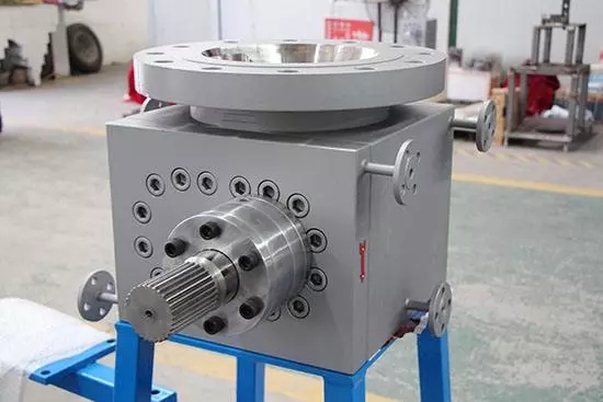 ????????在過濾網(wǎng)變換器后面,配備一個能夠保證熔融物料穩(wěn)定地進入模具的齒輪泵,可以防止上述問題的發(fā)生。但是,熔融物料在過濾網(wǎng)更換后所發(fā)生的溫度變化仍然需要通過對模具的調(diào)整來解決。同時,由于齒輪泵容易被堅硬的雜質(zhì)損壞,因此,齒輪泵也需要得到精細的過濾網(wǎng)的保護。