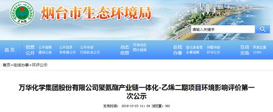 萬華煙臺聚氨酯項(xiàng)目環(huán)評公示