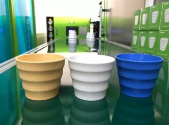 ????????伊之密DCIM在線配混直接注塑成型方案,直擊“循環(huán)經(jīng)濟(jì)”熱門話題,現(xiàn)場(chǎng)生產(chǎn)可生物降解塑料咖啡杯。