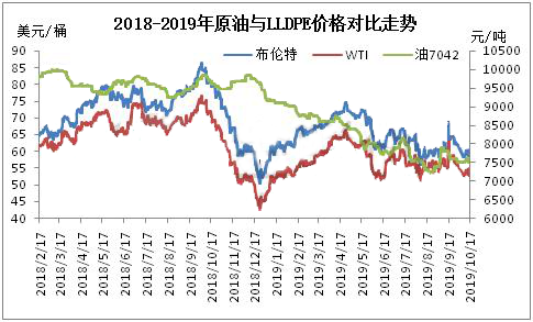 ????????無論是9月中旬沙特關鍵原油設施遇襲導致關閉一半原油產(chǎn)量,還是10月中旬伊朗郵輪遇襲,兩次外界因素帶來的原油上漲,均不同程度帶動了聚乙烯行情出現(xiàn)回漲。但受英國脫歐以及世界經(jīng)濟增速預期再度下調(diào)等原因,原油價格回落,市場心態(tài)隨之謹慎,交投氣氛陷入低迷,石化紛紛對聚乙烯價格出現(xiàn)下調(diào)。