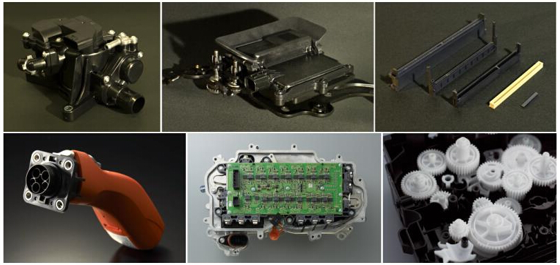 ????????針對(duì)電動(dòng)汽車應(yīng)用領(lǐng)域,公司開發(fā)了新型DURANEX PBT和DURAFIDE PPS材料。這些材料適用于發(fā)動(dòng)機(jī)周邊部件,如動(dòng)力控制單元(PCU),具有高絕緣性能、低吸水性,并可滿足惡劣工作條件下的要求(-40℃至150℃,相對(duì)濕度高達(dá)95%)。