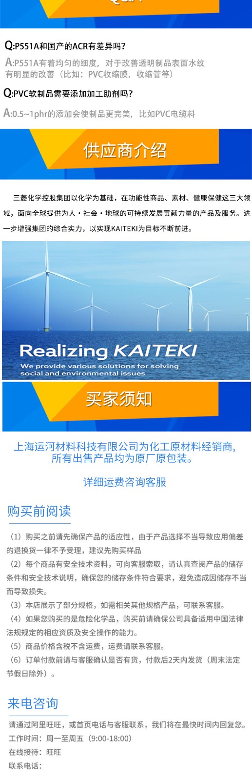 • 如果您對(duì)我們的P-551A日本三菱ACR增韌劑pvc助劑抗沖擊劑樹(shù)脂改性劑有任何疑問(wèn),或者想索取P-551A日本三菱ACR增韌劑pvc助劑抗沖擊劑樹(shù)脂改性劑物性表datasheet、物質(zhì)安全資料證書(shū)MSDS、ROHS檢驗(yàn)報(bào)告、SGS報(bào)告、REACH環(huán)保證明、FDA證明、EU法規(guī)證明、UL證書(shū)及出廠證明COC/COA報(bào)告等,敬請(qǐng)撥打我們的服務(wù)熱線 19279864570,或者點(diǎn)擊 聯(lián)系我們 給我們留言。